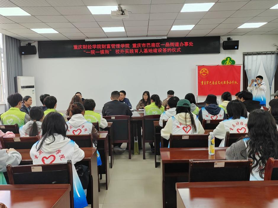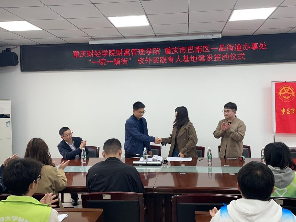 4月6日下午,我校财富管理学院与重庆市巴南区一品街道“一院一镇街”校外实践育人基地建设签约仪式在一品街道举行。