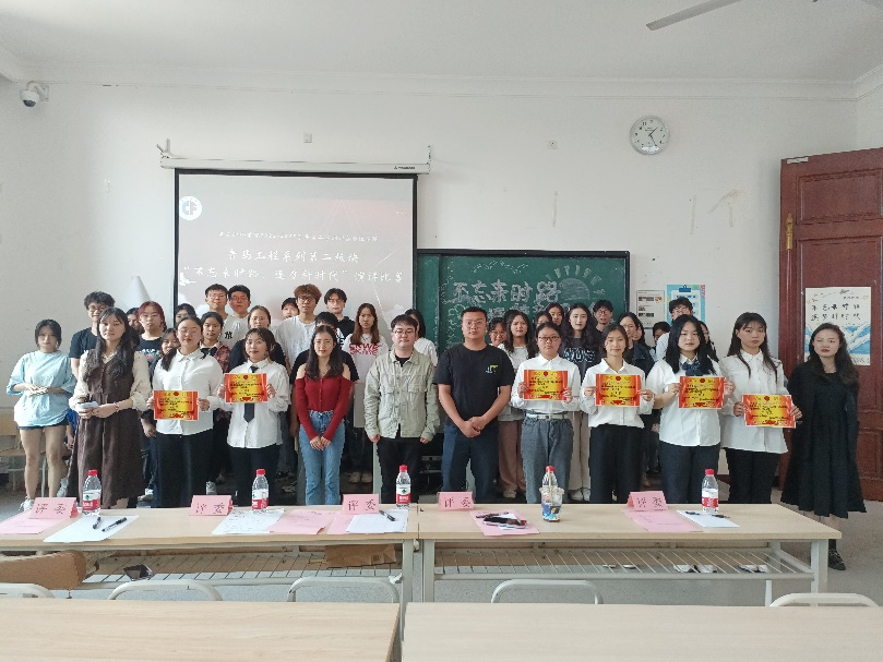 经过初赛的激烈比拼,共有九支队伍脱颖而出,进入决赛。在决赛中,参赛人员紧紧围绕主题,巧妙结合背景音乐、图文视频生动形象地讲述了中国共产党百年奋斗历程。每位参赛选手落落大方、侃侃而谈、声情并茂,发自内心地抒发对党对祖国的热爱之情。一号选手刘姣麟带领大家共同回顾党的百年征程,以“山河虽无恙,吾辈当自己”的时代强音号召当代青年为党和国家贡献青春力量。二号选手崔金今通过讲述时代英雄的故事,表达了对革命先辈的敬仰以及对新征程的美好祝愿。选手们真挚的感情,让评委和听众产生共鸣,不时赢得阵阵掌声。最后,崔金京同学用其坚定的声音、饱满的情绪,展现了青年学子对筑梦新时代的坚定信心,获得评委的一致赞赏,摘得桂冠,李嘉欣、刘姣麟荣获二等奖,田晨晨、李开文和潘美君获得三等奖,朱骏驰、杜欣蔚和高凤娇获得优秀奖。