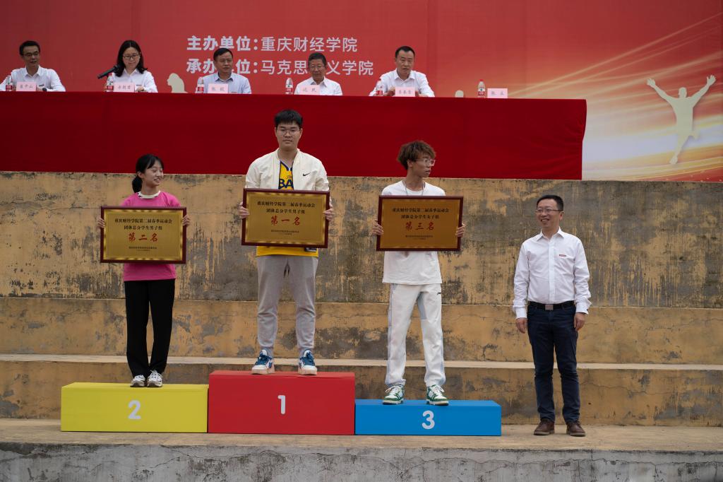 闭幕式上,总裁判长杨政宣布了运动会获奖名单并举行了隆重的颁奖仪式。在本次运动会中,会计学院、软件学院、金融学院分别荣获学生团体总分前三名;软件学院工会、物流工程学院工会、讯飞人工智能学院工会分别荣获教职工团体总分前三名;同时,获得学生优秀组织奖的有财富管理学院、金融学院;获得教职工优秀组织奖的有马克思主义学院工会、会计学院工会、公共管理学院工会。连绵不断的掌声,表达出大家对获奖人员由衷的祝贺。