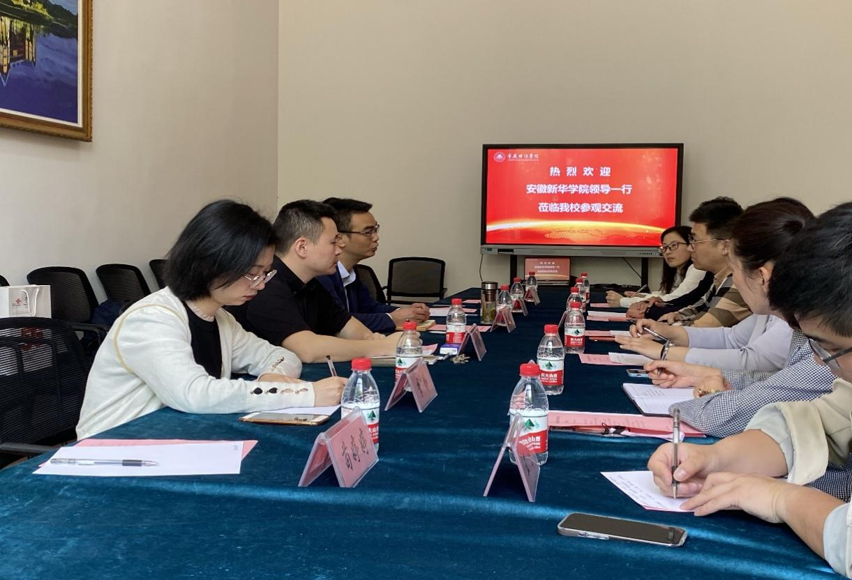 安徽新华学院与我校同属民办高校,有着相似的学科布局,均获批金融学类国家级一流专业建设点。会上,双方就国家级一流专业建设、现代产业学院建设、人才培养模式改革、教学资源建设、教学质量管理、实践教学体系建设、产教融合模式创新等方面进行了深入探讨。通过交流,双方均表示受益颇多,拓展了思路和视野,明确了方向和目标,希望两校继续加强交流合作,共同探索民办高校国家级一流专业建设之路。