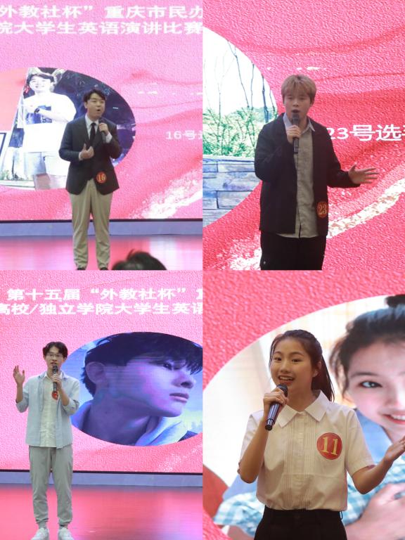 5月20日-21日,第十五届“外教社杯”重庆市民办本科高校/独立学院大学生英语演讲比赛在我校举办。大赛由上海外语教育出版社主办,我校承办,重庆人文科技学院、重庆外语外事学院、重庆工程学院、重庆移通学院、重庆对外经贸学院、重庆工商大学派斯学院和重庆科技学院协办。