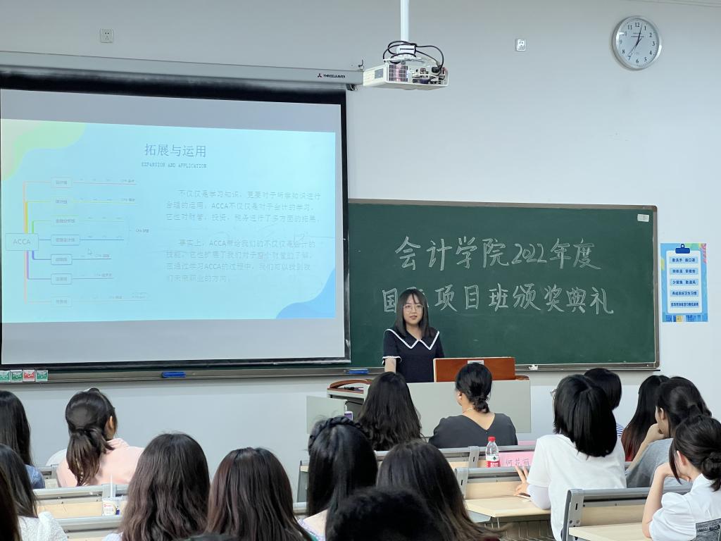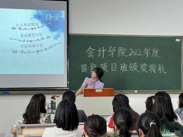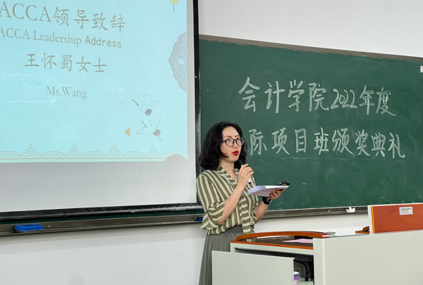 会上,李倩向一直奋斗在教学、科研、服务岗位上的老师表示感谢,对ACCA国际项目班的获奖同学们送上诚挚的祝贺。李倩向大家介绍了ACCA国际项目班的办学宗旨以及过去九年来取得的优异成绩,鼓励同学们要把握机会,以更高的标准要求自己,踔厉奋发,不负韶华,在未来实现人生价值。
