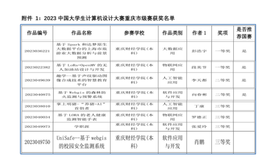 5月22日,2023 年(第16届)中国大学生计算机设计大赛重庆市级赛获奖名单正式公示,在我校讯飞人工智能学院组织9支参赛队伍中有8支队伍获奖,其中2项省部级一等奖、 2项省部级二等奖 、4项省部级三等奖4项作品入围国赛。