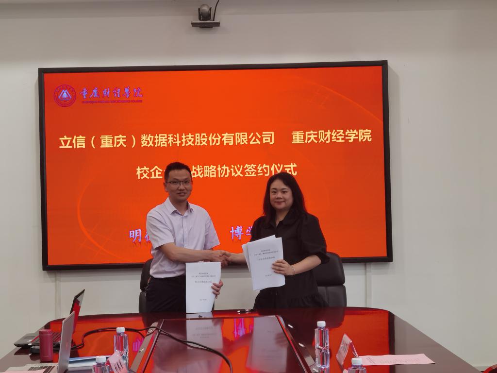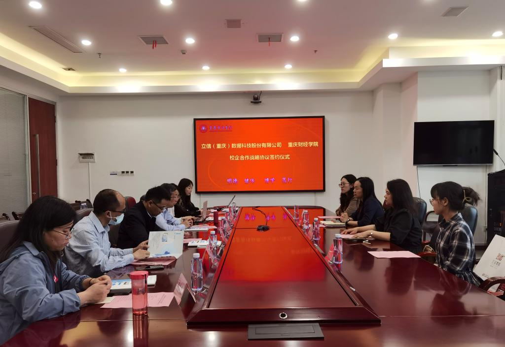 5月26日上午,我校与立信(重庆)数据科技股份有限公司(以下简称“立信数据”)在行政楼2303会议室签订校企合作战略协议。立信数据CATI中心总监李发敏、访问员管理部经理邓莎、访问员专管秦鑫鑫和陈园园,我校副校长沈民教授,经济学院院长李红平、经济统计系主任伍度志、院长助理刘春兰、经济学专业负责人苟靠敏、经济学专业专职教师熊萍参加签约仪式。签约仪式由李红平主持。