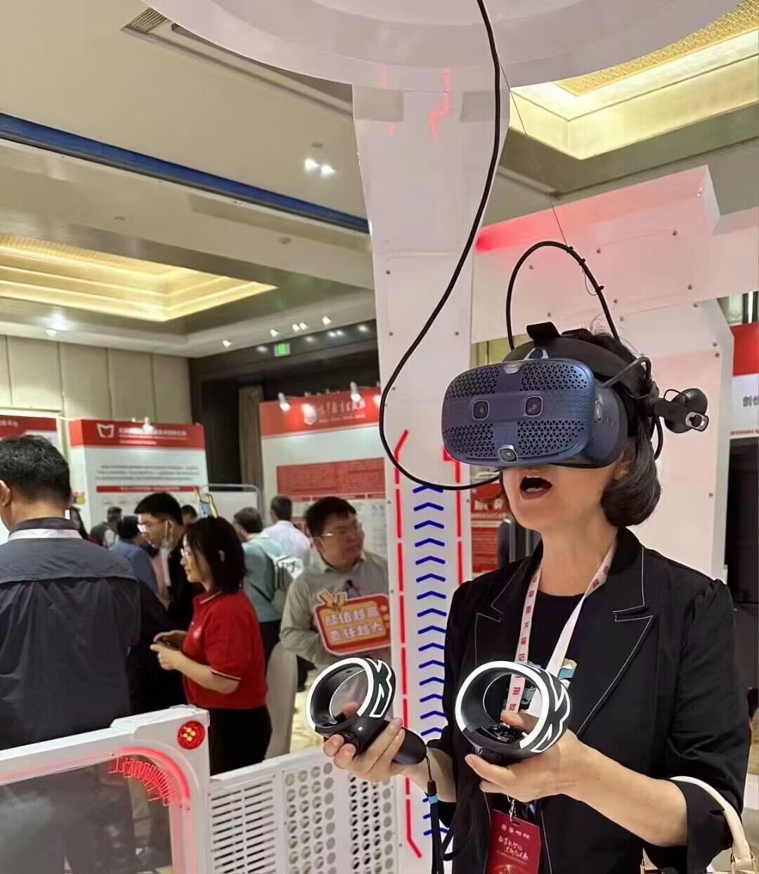 章新蓉教授和李倩副院长在会上体验元宇宙实验,参与各实验室空间穿越教学有利于推进我校会计学学科和未来会计实验建设。
