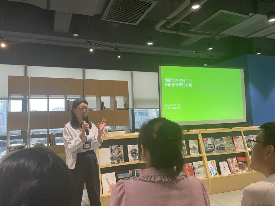 德勤全球交付中心税务及商务咨询总监周颖、管理咨询经理孙谭磊、风险咨询经理李一桐依次分享了所在部门的业务范围及对入职人员的相关要求,鼓励大家学好ACCA,争取早日进入德勤。在面对面交流环节,我校学生积极与企业人员探讨财会专业发展前景。