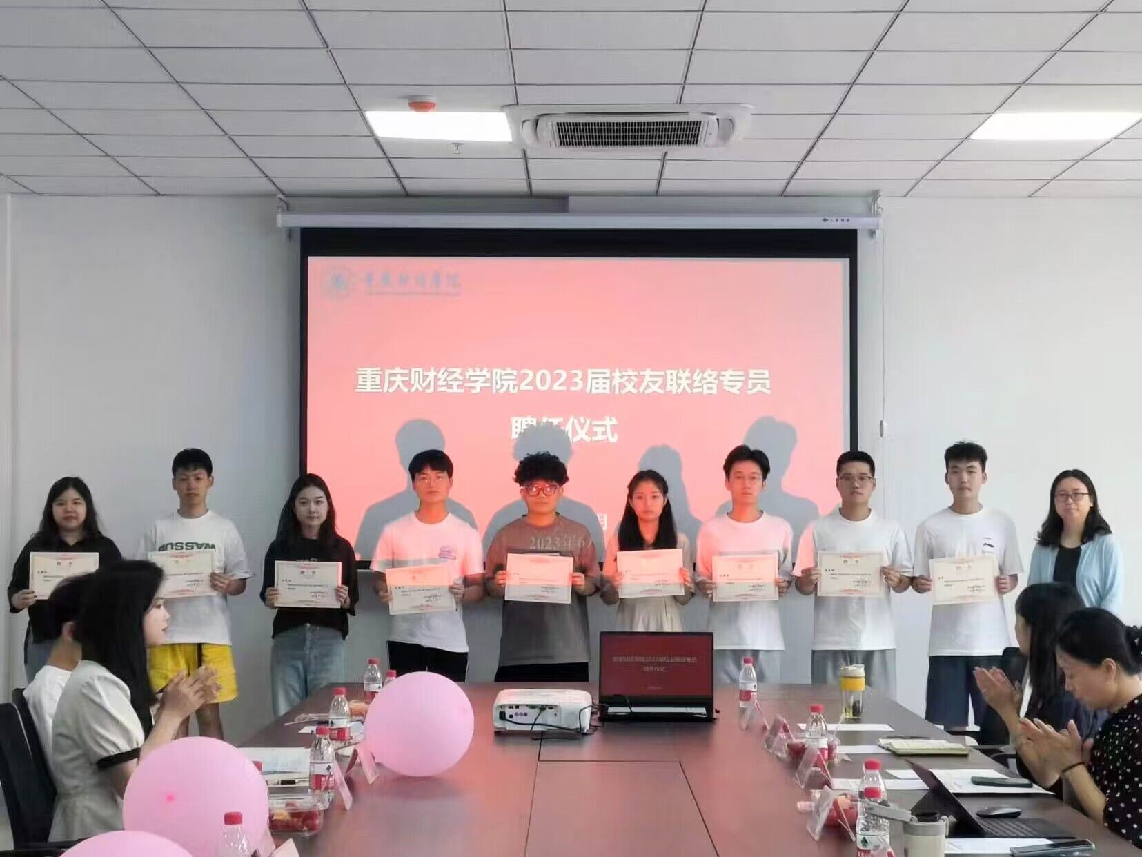 6月13日中午,我校2023届校友联络专员聘任仪式在G1-109党团活动室顺利举行。学校党委副书记房朝君、学生工作部部长唐川川、党政办公室副主任王艺燃及团委书记夏文瑞出席本次活动。聘任仪式由党委宣传部部长、校友会副会长倪倩茜主持。