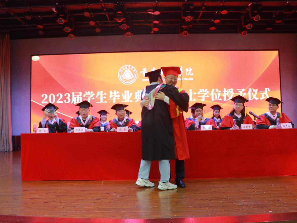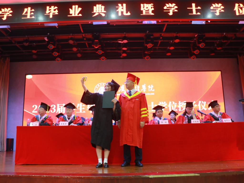 会上,党委书记张毅宣读市级、校级优秀毕业生相关文件,副校长沈民宣读考取研究生相关文件、“浩燃奖学金”获得名单,同学们自信从容走上领奖台,收获自己的成长与进步;校长助理崔中山宣读准予毕业及授予学士学位的相关文件,校长吴华安为毕业生授位并行拨穗礼,期间亲切与同学们互动合影,并表示热烈祝贺。同学们主动与吴校长或比耶或握手或拥抱,激动与喜悦洋溢在每个人的脸上。