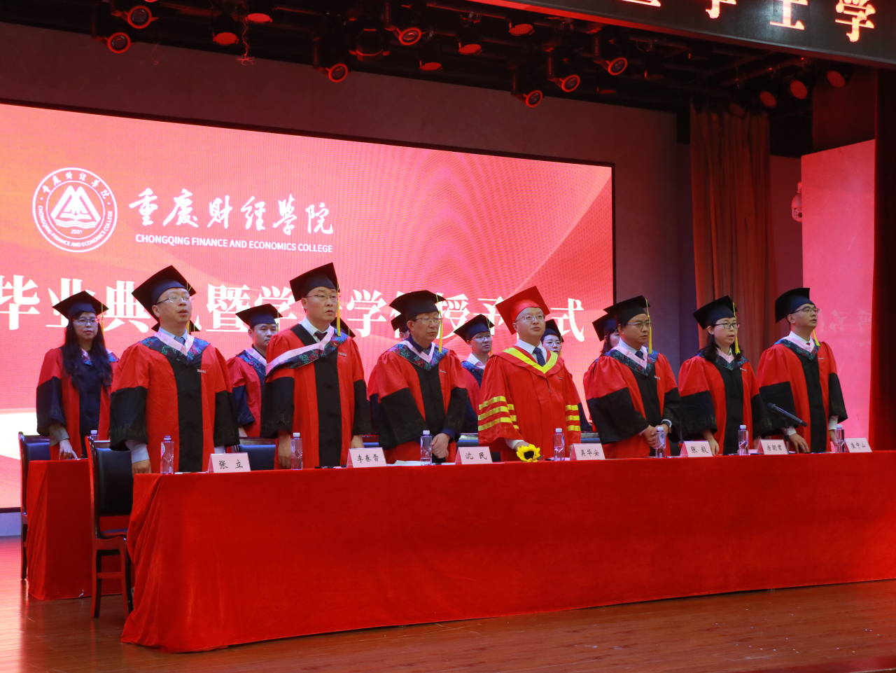 全体起立,齐唱国歌,伴随着雄壮的国歌声,本届毕业典礼暨授位仪式正式拉开帷幕。