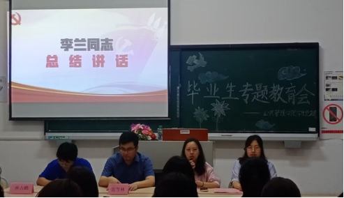 为加强毕业生党员思想政治教育,坚定理想信念,增强党员的文化素养和综合素质。6月15日,我校公共管理学院学生党支部在教学楼1304教室召开毕业生党员专题教育活动,公共管理学院党总支副书记李兰、党总支组织统战委员范雪林、学生党支部书记王春凤出席本次会议,全体毕业生党员同志参加会议。