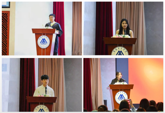 宣讲结束后,各位校领导为毕业生代表颁发了2023届毕业生先进事迹宣讲团聘书,并对他们取得的成绩表示祝贺。最后全体同学向八位毕业生代表送上了最美好的毕业祝福。