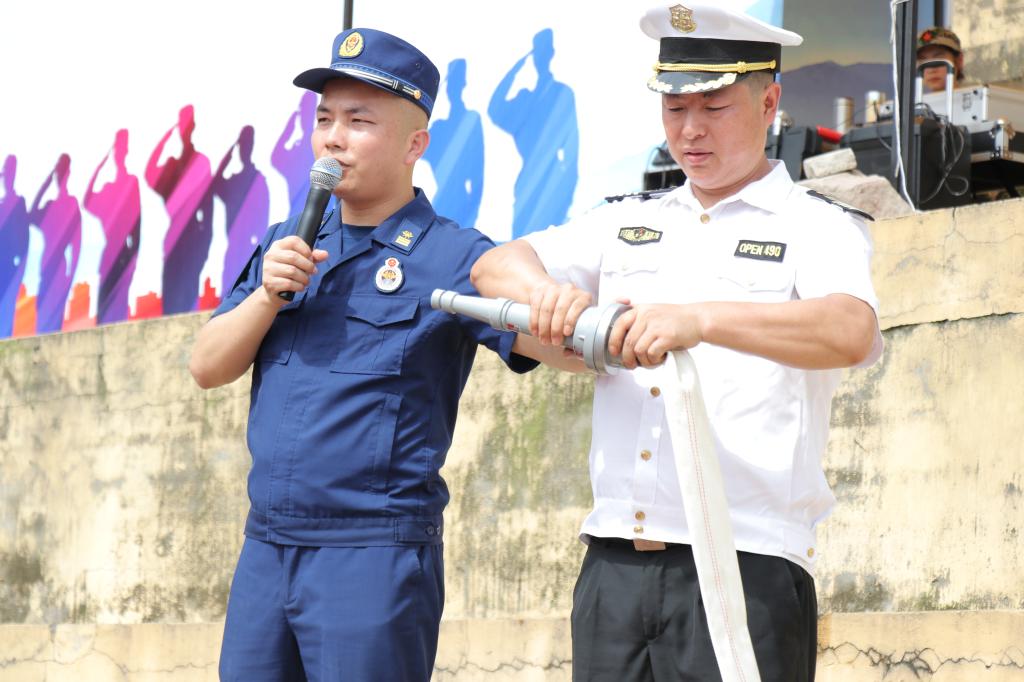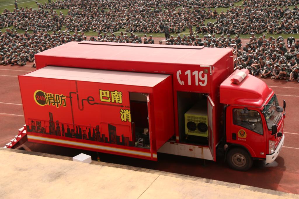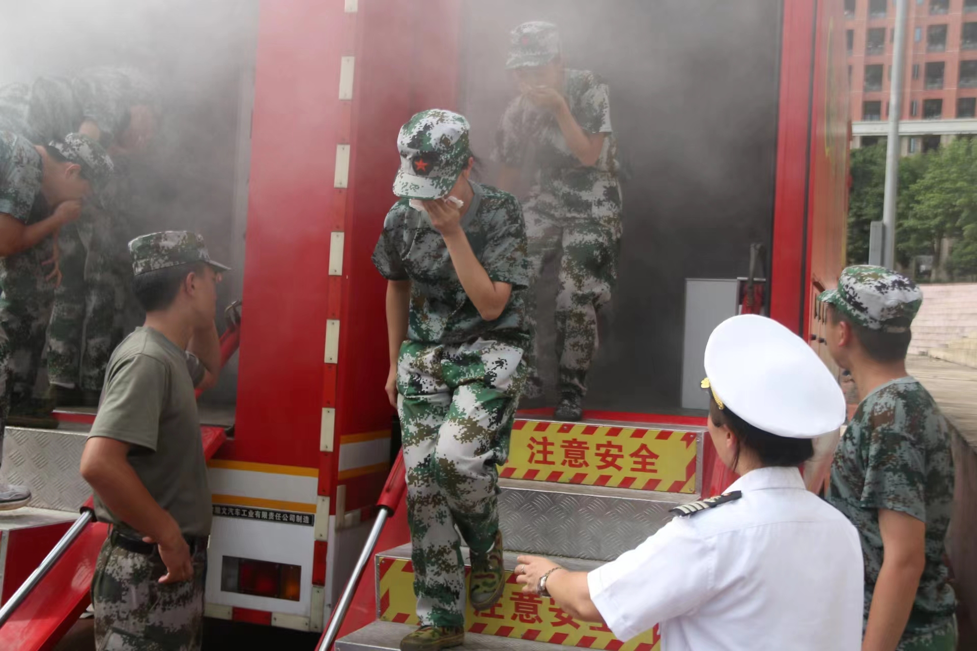 紧接着,由20名同学出列体验消防水枪,将水带扛至肩头,通过对其的了解和专业人员的指导使用其完成灭火。最后,数名同学排队进行了火灾逃生模拟,模拟车内烟雾弥漫,参与学生纷纷低头有序逃离,安保处也在旁边及时接应学生逃离并将其搀扶下车,通过全体人员的通力合作顺利完成了此次演习。