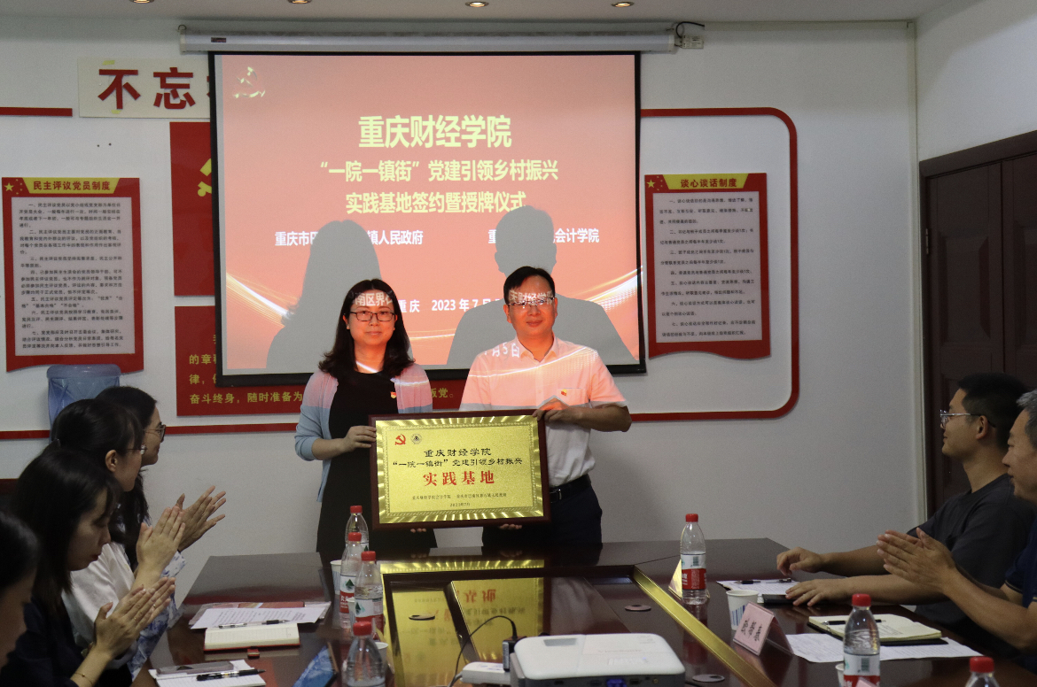 7月5日下午,我校会计学院与重庆市巴南区界石镇人民政府人民政府举行了“一院一镇街”党建引领乡村振兴实践基地签约授牌仪式。