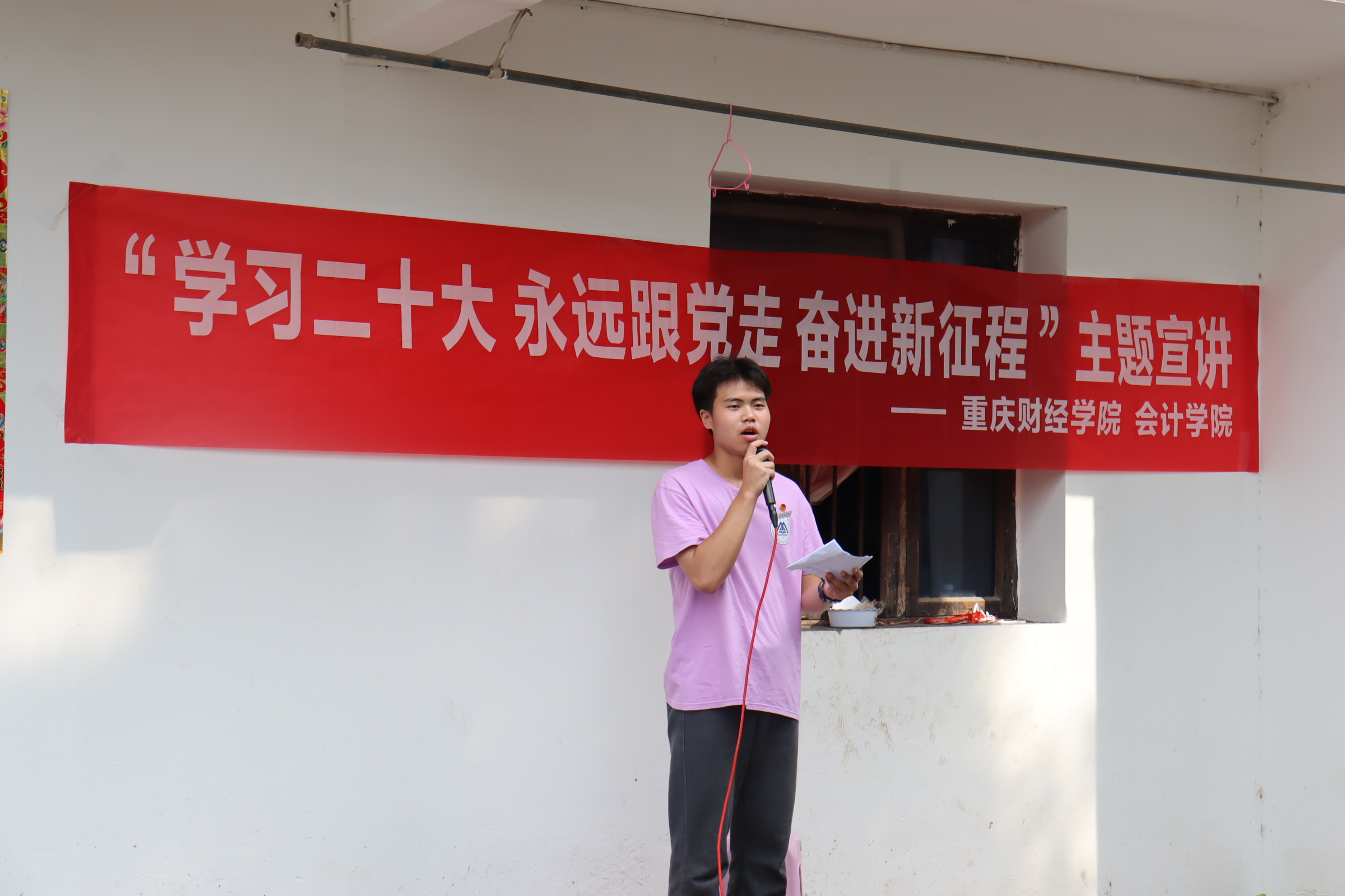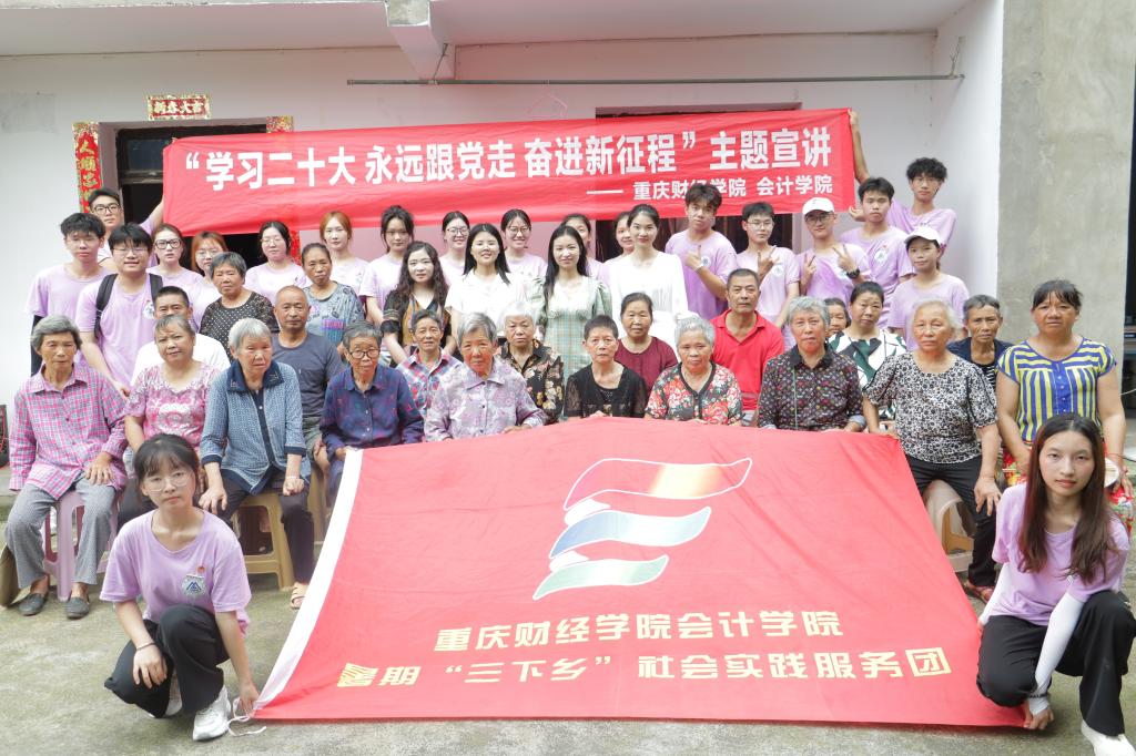 为深入学习践行党的二十大精神,切实增强基层农村工作者履职本领,持续发挥先锋榜样的引领作用。7月7日上午,在我校会计学院团总支书记谭白冰、学生第一支部书记阳圆、专职辅导员谢雨贝三位指导老师的带领下会计学院2023年暑期“三下乡”社会实践团来到巴南区界石镇桂花村开展“学思践悟二十大,分楫扬帆启新程”主题教育活动。