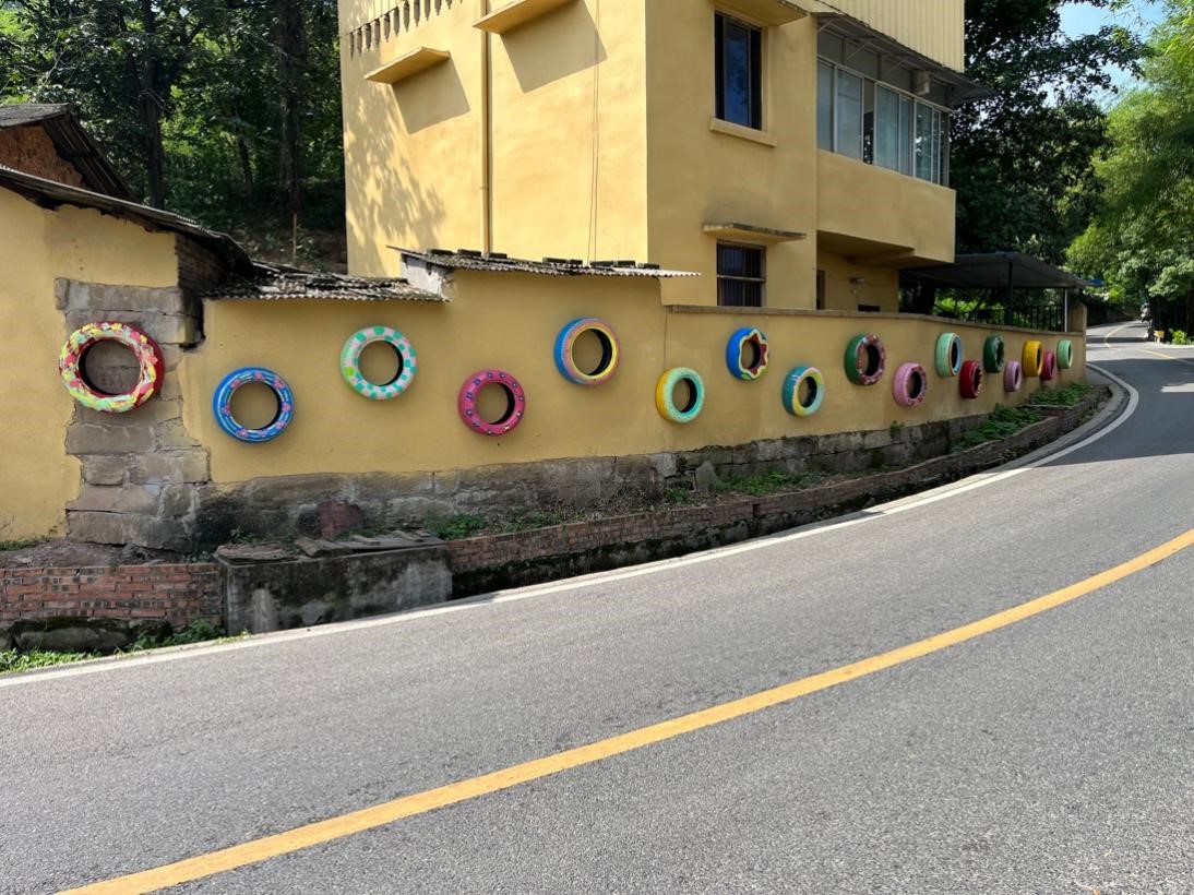 最后,志愿者们进入云篆山,根据地理位置的不同,围绕轮胎大小、颜色和图案设计出不同的造型方案,并结合设计方案,陆续将轮胎摆放到位。在大家的共同努力下,云篆山公路穿上了“新装”,形成独特的乡村公路风景线。