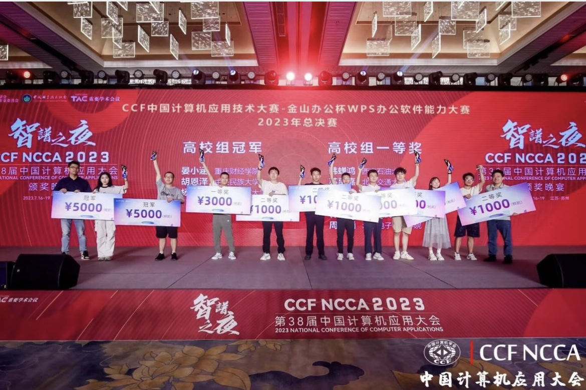 近日,2023年度中国计算机应用技术大赛——金山办公杯WPS办公软件能力大赛总决赛在苏州CCF总部落下帷幕。由我校软件学院夏祥礼老师指导的2020级国际经济与贸易专业晏小涵同学荣获高校组表格科目冠军。