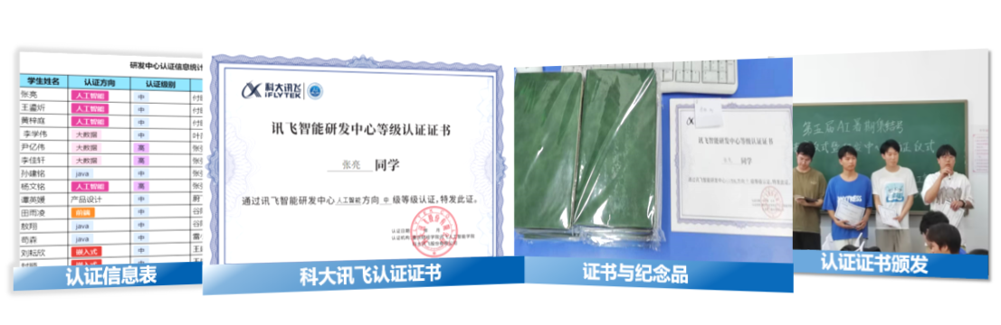 本次暑期培训,强化了研发中心人才培养与认证,打通研发中心向工程中心人才输送的路径。通过项目验收、竞赛答题、认证测评等多元方式完成研发中心首批15人认证。研发中心技能认证证书由科大讯飞作为企业认证机构,并盖有科大讯飞公章。