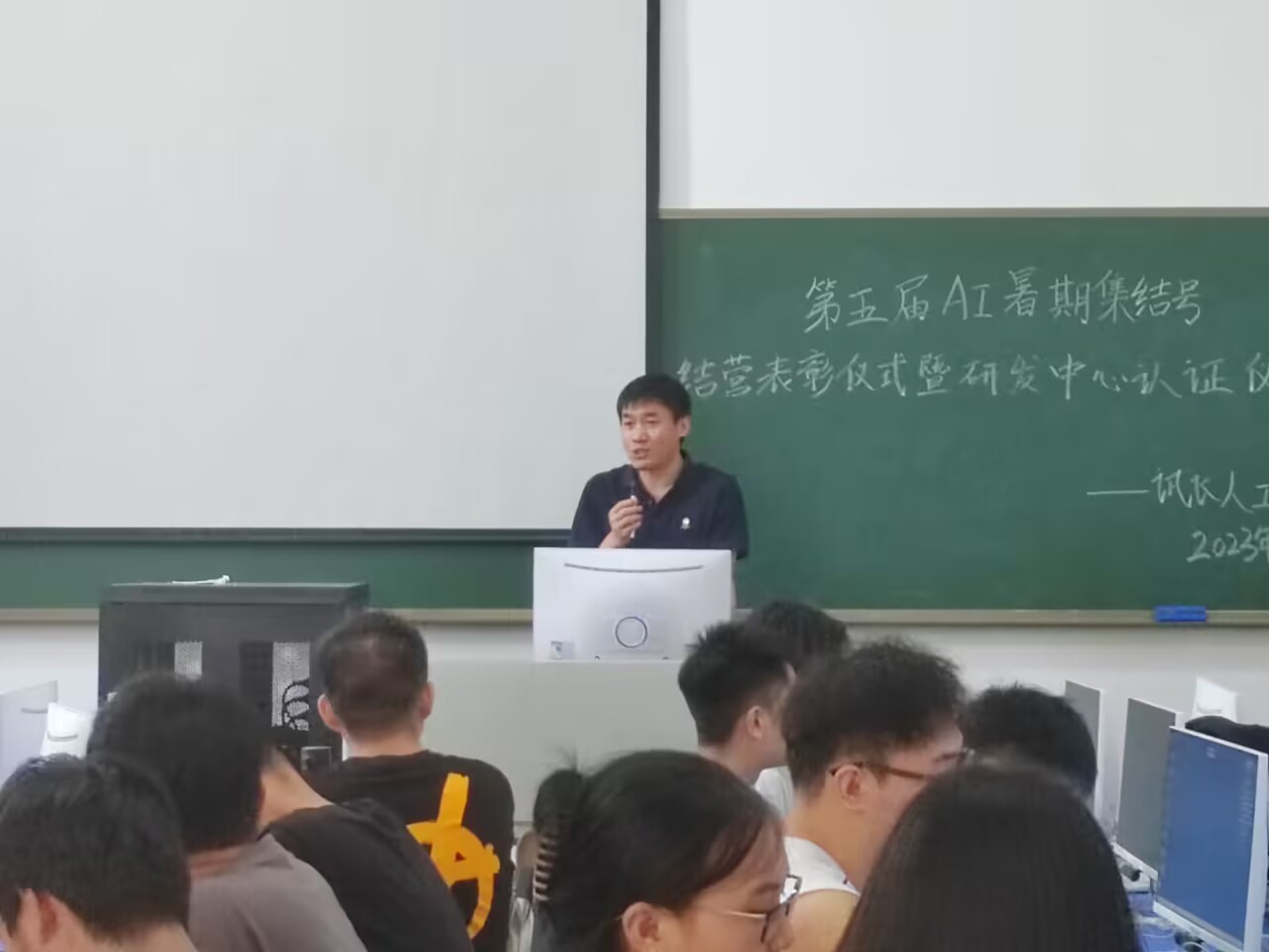 近日,第五届“AI暑期集结号”结营表彰仪式暨研发中心认证仪式在我校教学楼1207教室举行。出席本次结营仪式的有讯飞人工智能学院副院长艾军勇及11位讯飞工程师,全体参训同学参加结营仪式。