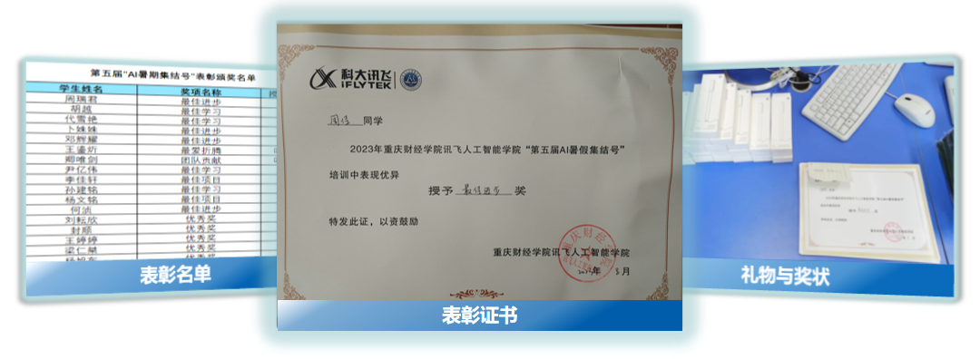 结营仪式共分为项目展示、研发中心认证证书颁发仪式、暑期培训表彰仪式、院长总结致词4个环节,本次结营表彰仪式总结与回顾了整个暑期培训工作,也对同学们的学习成果进行了展示与表彰,为第五届“AI暑期集结号”画上了圆满句号。
