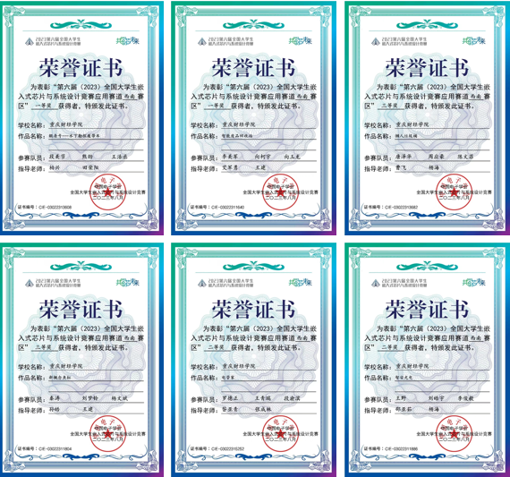 我校自2022年开始探索该赛事,并在第五届全国大学生嵌入式芯片与系统设计竞赛中获得西部赛区三等奖1项、二等奖1项。今年通过培养与选拔共推选出6支队伍参赛,6支队伍在西南赛区竞赛中表现优异且全部获奖,其中“智能废品回收站”与“鲲舟号--水下勘探履带车”作品荣获西南赛区一等奖、“智安光电”与“电管家”作品荣获西南赛区二等奖、“新概念鱼缸”与“懒人垃圾桶”作品荣获西南赛区三等奖。从参赛人次、获奖数量、获奖层次上均实现了我校在该赛事成绩上的新突破。