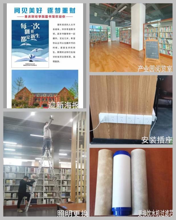 图书馆为满足读者需求,提供更加优质的阅读资源和学习环境,利用暑假时间,对图书馆内部环境进行了升级改造:一是扩大阅览区。为满足广大读者的阅读学习需求,图书馆在产业园新增阅览区1个,阅览室8间,新增阅读座位80余个,共计约1200平方米;二是新增插座。为方便读者使用电子设备,我馆在图书馆(新、老馆)阅览区墙面新增插座120余个,方便读者学习使用;三是更换饮水机过滤芯。为提供更加健康、安全的饮水环境,图书馆(新、老馆)均已更换全新饮水机,供大家放心使用;四是更换照明灯具。为了给读者提供明亮整洁的读书环境,图书馆(新、老馆)已更换LED灯管约20根。