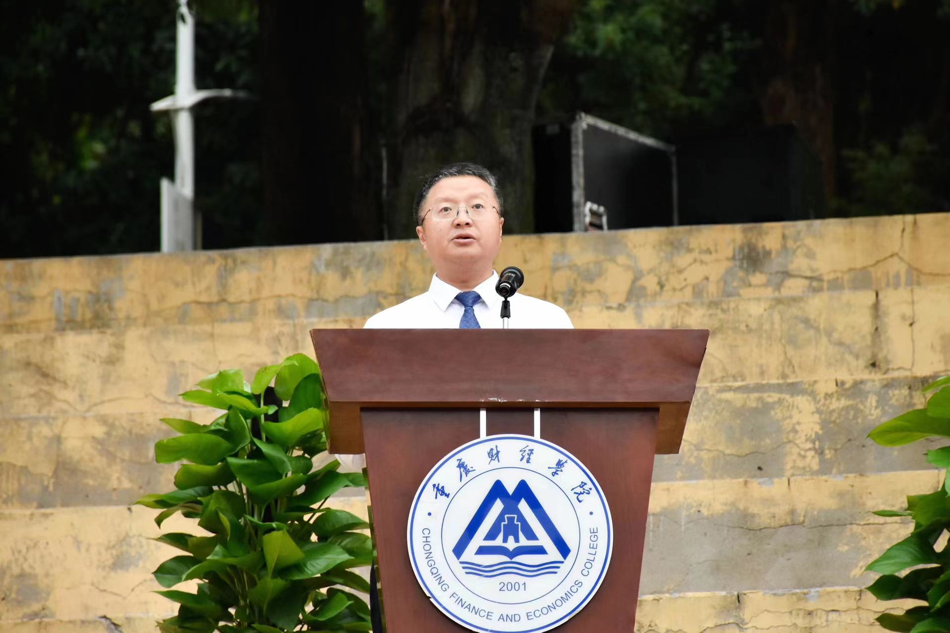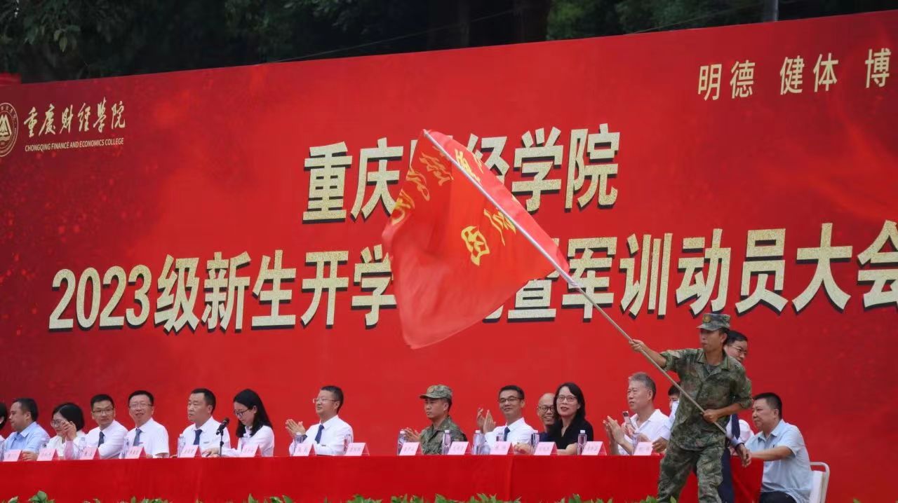 最后,党委书记张毅向军训团授旗。蓝图已经掣画,奋进正当时。随着校歌的奏响,2023级新生开学典礼暨军训动员大会也圆满落下了帷幕,重财学子的军训旅程正式开启。