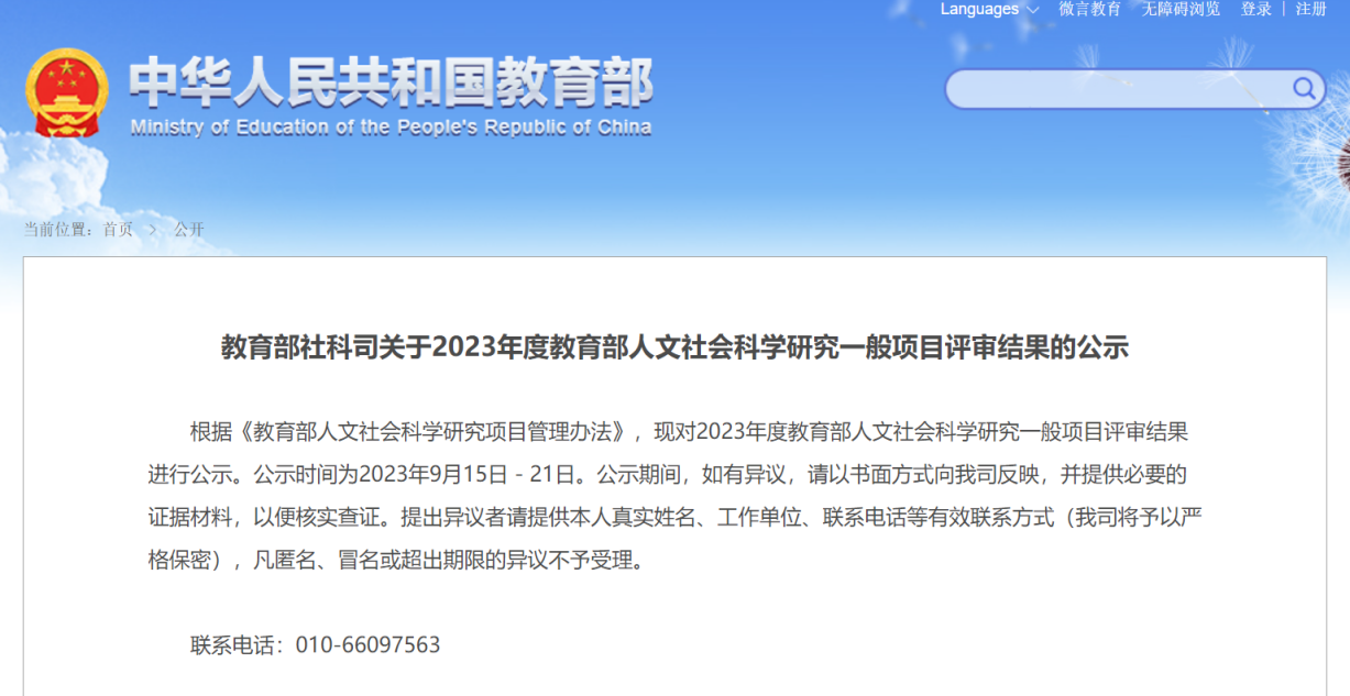 【喜报】我校入围1项教育部人文社会科学研究专项任务项目