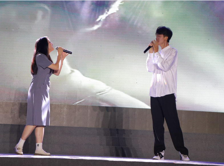 “我把青春融进,融进祖国的江河。”本次迎新晚会在气势磅礴的2023级新生代表及新生军训教官的大合唱中拉开序幕。这首大合唱唱出了我校学子对祖国的深厚情感,对校园的无限热爱。小雨淅沥,歌声悠扬,每一个节目都是经过重重筛选、精心准备,每一次表演都让现场热情高涨。大学生艺术团带来的舞蹈《小城雨巷》、歌曲《生活总该迎着光亮》及朗诵《致敬榜样》和《强国力量》,生动形象地展示了我校莘莘学子的拳拳爱国心。