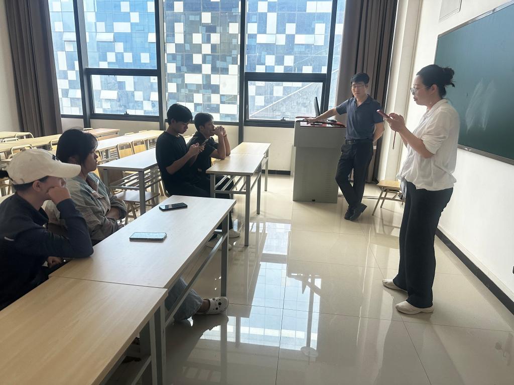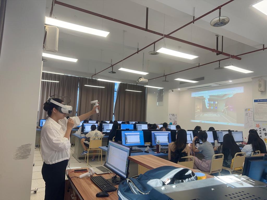 为让同学们身临其境般的感受真实实训场景,寓教于乐,提高同学们学习的积极性,两位老师给同学们带来了AIE智境的VR眼镜体验,同学们跃跃欲试,争先体验。