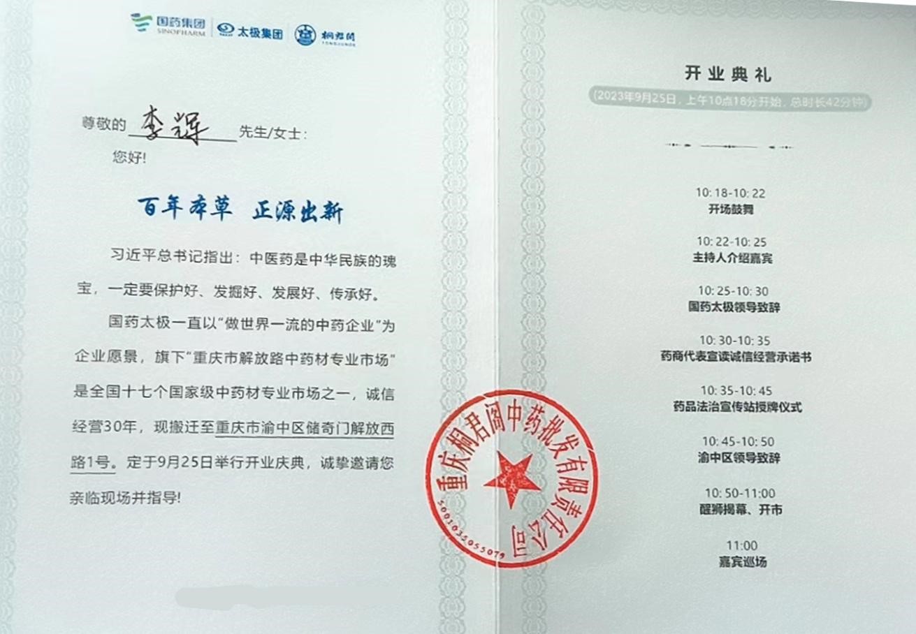 为进一步落实“学科跟着产业走、专业围着需求转”的应用型人才培养要求,更好地融入行业,满足市场人才需求,9月25日上午,我校公共管理学院李辉院长受邀参加重庆市解放路中药材专业市场的开业庆典仪式。仪式后,李辉院长深入走访市场,并对市场的管理模式、监管体系、中医药文化传承创新以及产教融合等方面进行调研和沟通。据悉,重庆市解放路中药材专业市场于1993年开市,是国家批准的17家中药材专业市场之一。历经搬迁,于2023年9月25日重回储奇门。重新打造的专业市场,硬件设施的升级、管理的规范化,推动着中医药及健康服务业在传承创新中高质量发展。