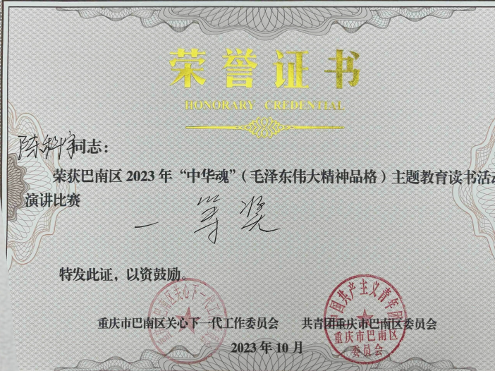 10月13日下午,由重庆市巴南区关心下一代工作委员会、共青团重庆市巴南区委员会联合举办的“中华魂”(毛泽东伟大精神品格)主题教育读书活动演讲比赛决赛在巴南区举行,31名青年竞技决赛。