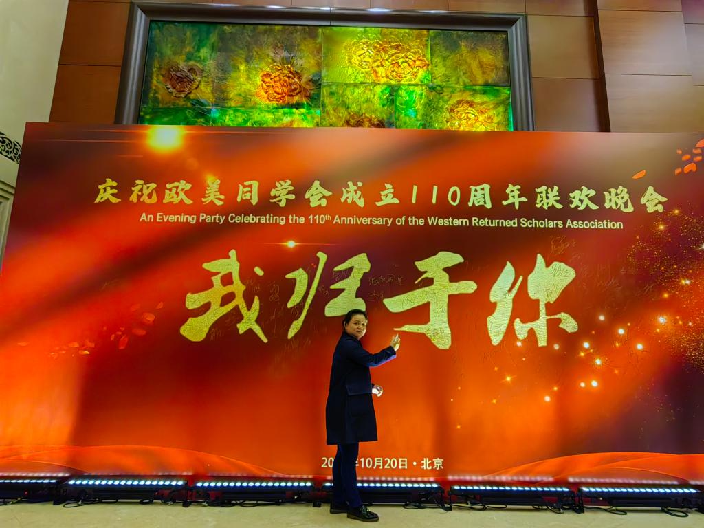 我校欧美同学会会长、产业办副主任王晓颖副教授作为重庆市代表出席了大会。现场聆听了习近平总书记的贺信和王沪宁主席的讲话,王晓颖副教授表示“总书记的贺信让人倍受鼓舞。归国20年见证了祖国经济社会的发展,身在其中,与有荣焉,未来将更加努力,为‘索我理想之中华’继续奋斗。”