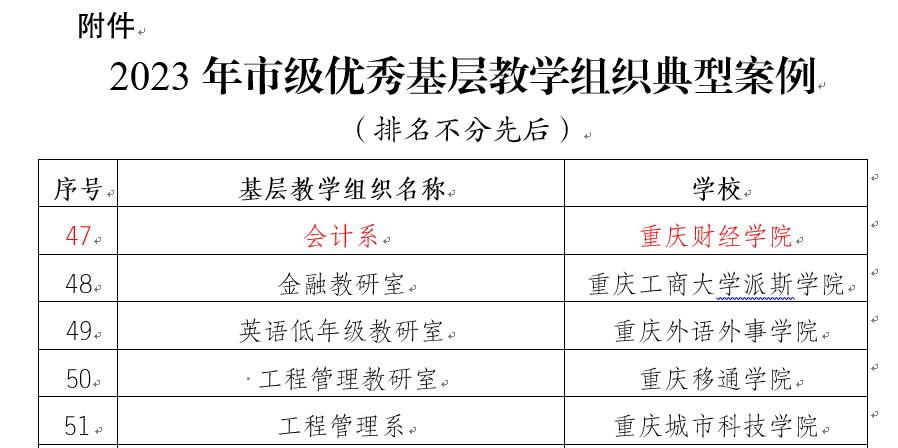 【喜报】我校会计系获评为2023年重庆市级优秀基层教学组织典型案例