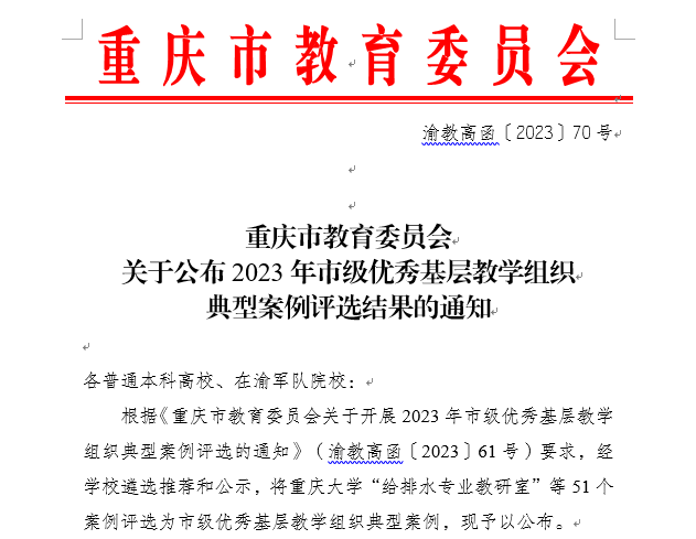 近日,重庆市教委发布了《关于公布2023年市级优秀基层教学组织典型案例评选结果的通知》(渝教高函〔2023〕70号),经学校申报,资格审查,专家评审,结果公示,我校会计学院会计系荣获2023年重庆市级优秀基层教学组织典型案例。