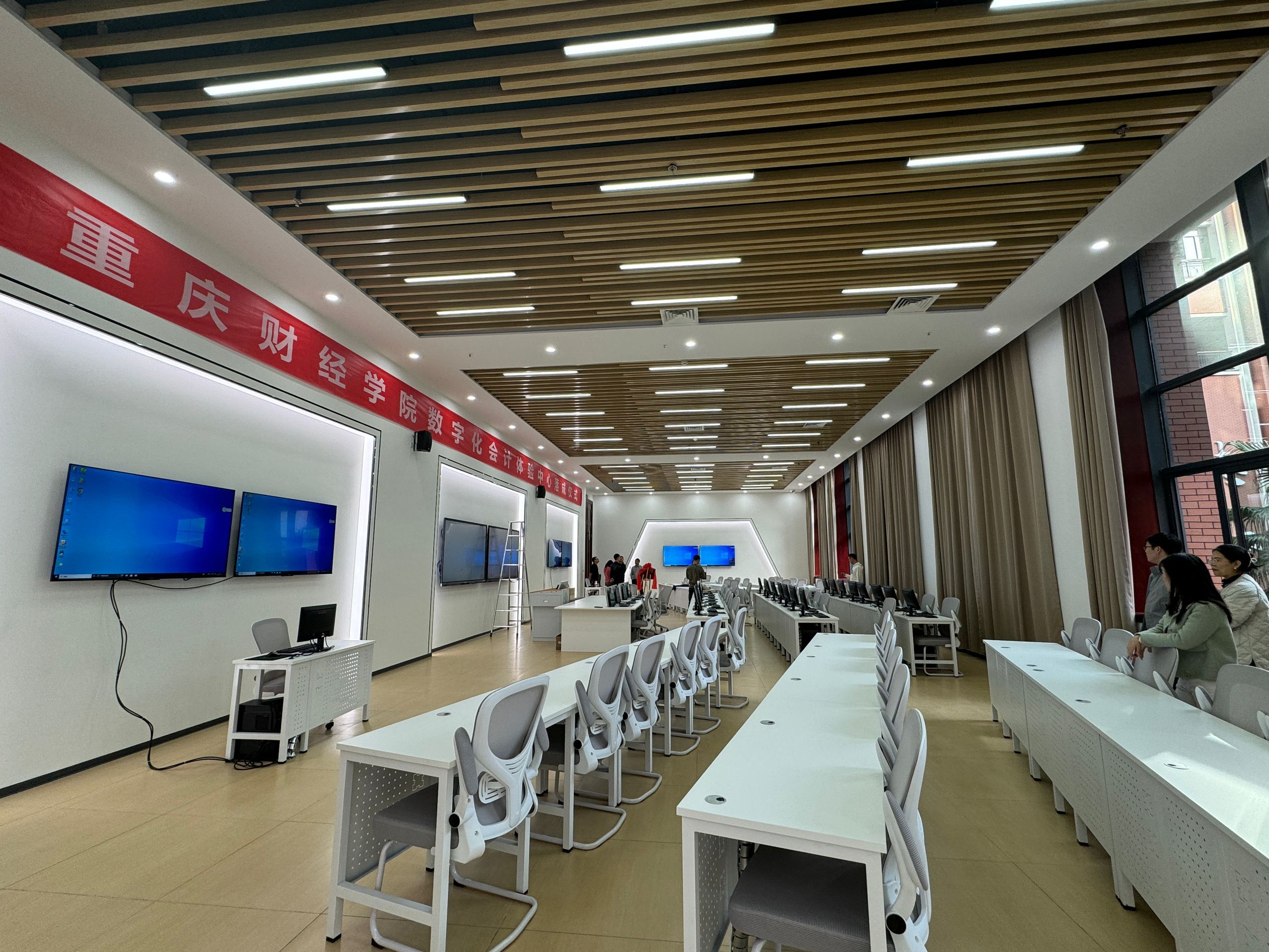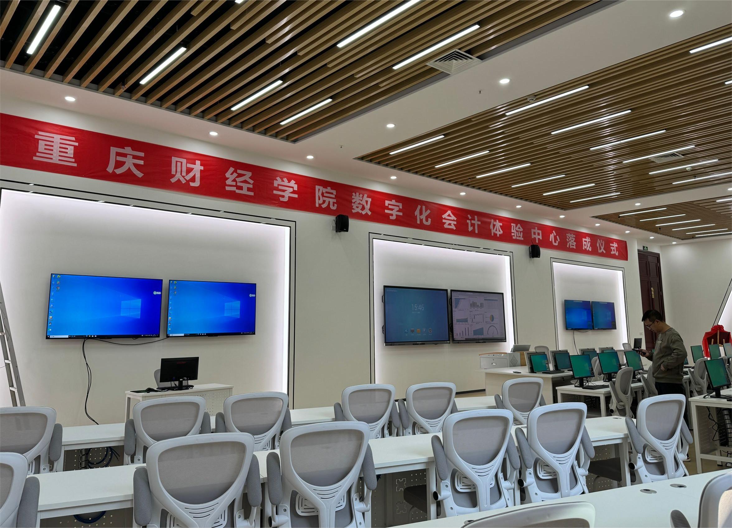 为不断深化产教融合、促进校企双方合作,促进专业人才培养与行业需求标准更紧密对接,11月17日上午,我校数字化体验中心落成仪式隆重举行。仪式由会计学院院长李倩主持。校长吴华安、副校长崔中山、教务处副处长李军、会计学院学术带头人章新蓉、会计学院院长李倩、产教融合首席专家周启刚、会计学院副院长王婧婧、会计学院党总支书记姚转花、会计学院院长助理杨瑞丽、智能会计方向骨干教师韩佳佚、智能财税方向骨干教师杨玲玲、新道科技股份有限公司重庆区域总经理徐福年、新道科技股份有限公司教学服务总监李志良、校企合作经理莫正海、驻校导师朱小芳出席仪式。