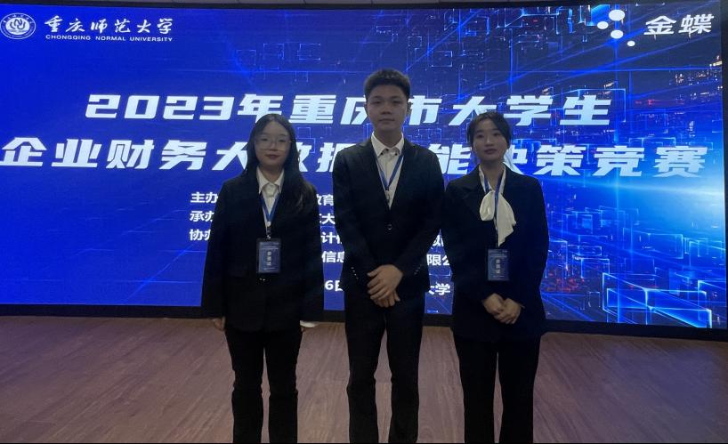 11月26日,由重庆市教育委员会主办,重庆师范大学承办,教育部会计信息化课程虚拟教研室、金蝶精一信息科技服务有限公司协办的“2023年重庆市大学生企业财务大数据智能决策竞赛”圆满落幕。来自重庆大学、重庆师范大学、重庆理工大学、重庆电子工程职业学院、重庆财经职业学院等36所高校97支代表队参赛,我校财富管理学院学生赵杨、刘飞燕、李开文组成的雄鹰队,在学院廉然和唐蕾老师指导下,经过激烈角逐,荣获省赛二等奖,实现我校在本赛事零的突破。