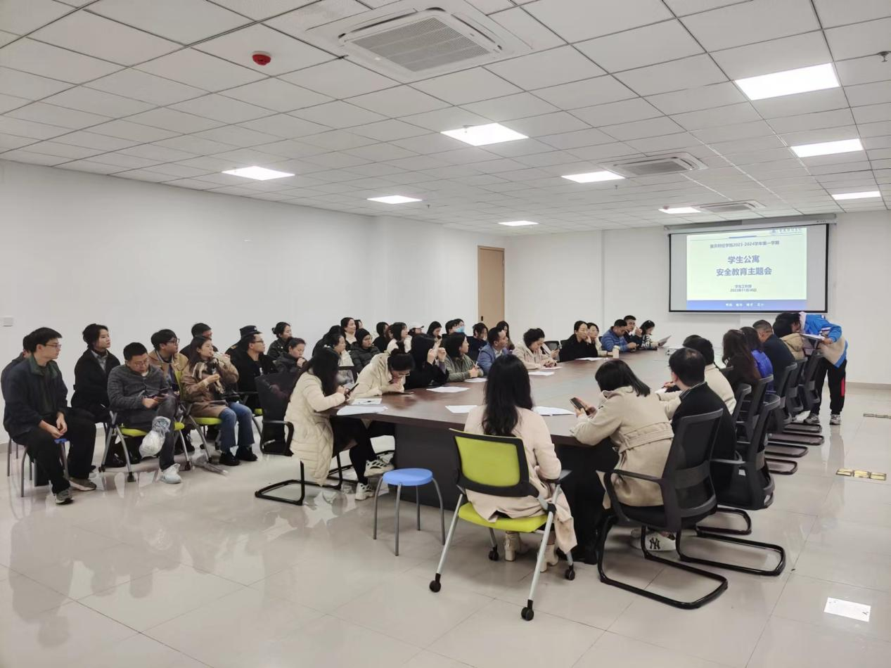 检查行动前,由学生处组织在“一站式”学生社区服务中心的党团活动室召开了2023-2024学年第一学期学生公寓安全教育主题会,会议由学生处副处长李兰主持,检查组全体成员共同参与。会上,李兰指出了本次安全检查重要性及安全检查注意事项,强调了在排查中发现的问题须进行详细登记、形成排查记录台帐,并及时逐项进行落实整改。保卫处副处长欧英前讲解了学生公寓常见安全风险隐患,重点讲解了管制刀具的辨识。