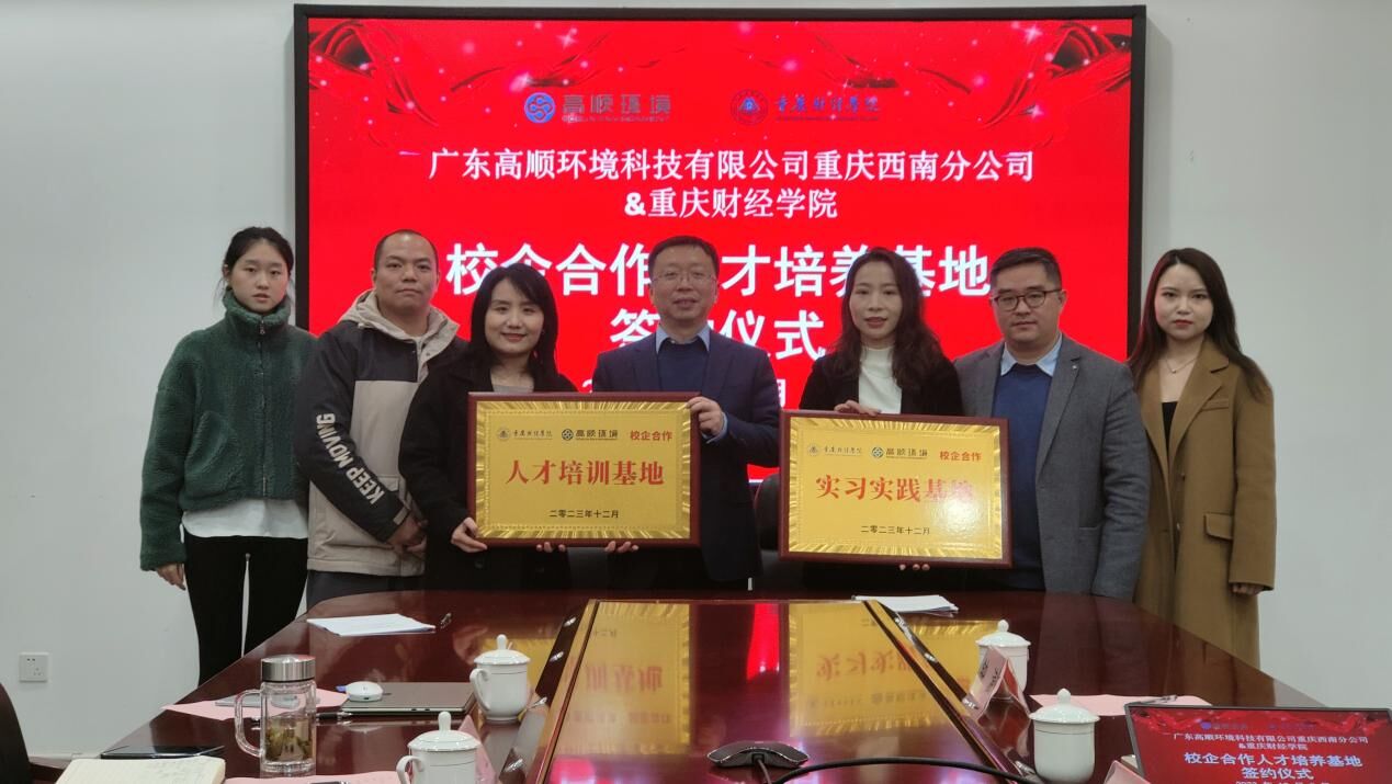为进一步优化专业建设,推动产教融合走深走实,积极构建校企“共建共享”的良好局面。12月5日下午,我校与广东高顺环境科技有限公司重庆西南分公司(以下简称高顺)在行政楼2303会议室举行校企合作人才培养基地签约仪式。高顺总经理肖潇,我校副校长张立,校企双方有关负责人参加会议。会议由国际商学院院长黄兰主持。