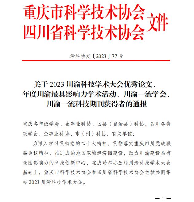 此次川渝科技学术大会优秀论文评选,共评选出优秀论文184篇,其中重庆市92篇。近年来,我校高度重视各类奖项的推荐申报质量,积极动员教师参与。后续,我校也将加强对各类推荐申报成果的把控,旨产出高质量的成果。