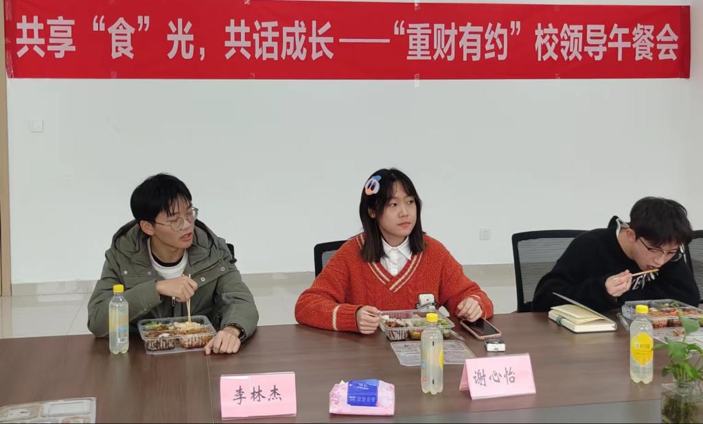 据了解,“重财有约”校领导午餐会是“一站式”学生社区综合管理模式改革的探索,是学校打通“三全育人”最后一公里,落实下沉式服务和贴近式教育的重要举措。据统计,本次“书记午餐会”主动报名、组织推荐或随机参与学生覆盖10个二级学院,共收集到诉求10余条、意见建议40条,已由学生处牵头全面梳理形成事项、责任部门、落实举措、落实时限等专项台账,联动党政办公室立项动态督查督办,并建立定期向分管校领导和学校党委汇报机制,不断丰富夯实校领导联系师生制度,有效打通党建引领“最后一米”,深入推进学校新时代教育评价改革走深走实,进一步推动学校治理体系和治理能力建设。