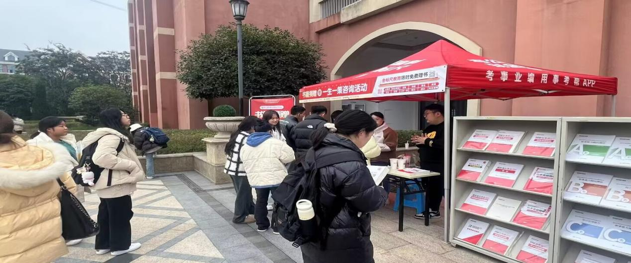 同时,也为同学们开展了为期3天的现场赠书与“一生一策”咨询活动,对同学们专业选岗分析、公考政策、岗位匹配、备考规划等方面问题及疑惑进行了一一解答和指导。同学们积极参与,现场赠送图书300余本,同学们表示老师们的指导对自己目标方向确立及备考计划制定起到很大的帮助,相关考试教材及真题在自己备考过程中具有极高的价值。