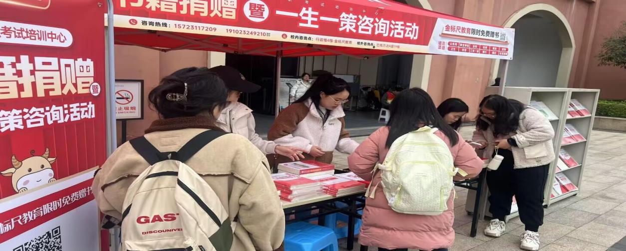 在此次活动中,教育商学院公职考试培训中心金标尺教育赠予我校图书馆国家公务员、重庆选调、各类事业单位等最新版考公考编教材200余本,供我校学生借阅、备考学习。