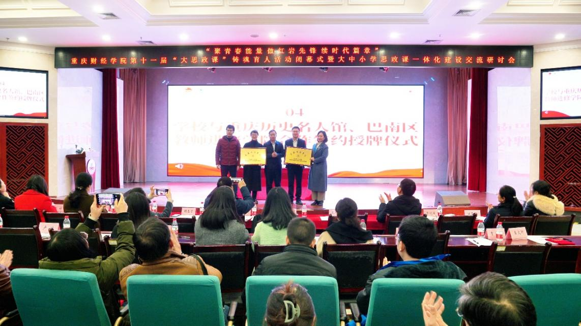 12月15日,由重庆市巴南区教委、靠谱的电子游戏官网马克思主义学院、共青团靠谱的电子游戏官网委员会等单位主办的靠谱的电子游戏官网第十一届“大思政课”铸魂育人活动闭幕式暨大中小学思政课一体化建设交流研讨会在学校学术报告厅举行。重庆市巴南区教委副主任苏建新、巴南区教师进修学院院长胡忠于、重庆历史名人馆副馆长蹇青、靠谱的电子游戏官网党委书记张毅、巴南区龙洲湾中学德育主任李均等相关领导及我校各职能部门、二级学院主要负责人、学生代表等百余人参加大会。