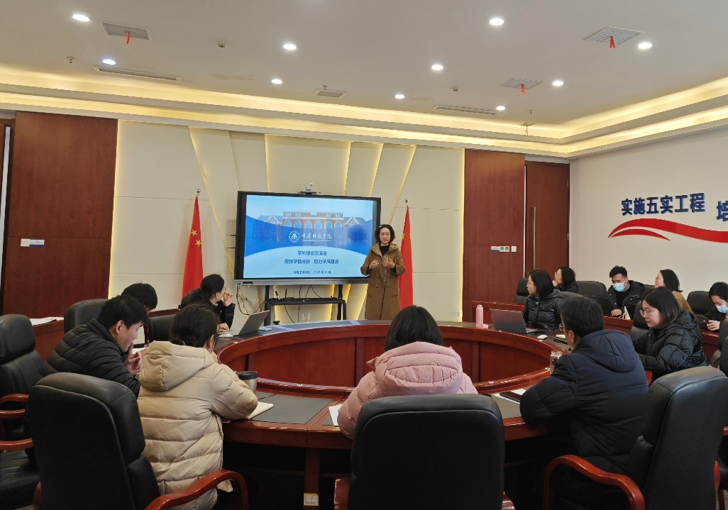房朝君副书记从三方面进行强调:各部门一是要找准观测点,抓住工作重点,“细”处着手优化学风,深入细致开展工作。二是要根据实际,创新工作方法,突出工作成效,打造学风建设新面貌。三是要统筹协调,树牢全校“一盘棋”思想,上下协同,左右联动,立足学校发展,紧扣人才培养,齐心协力推进学校教育教学工作高质量发展。