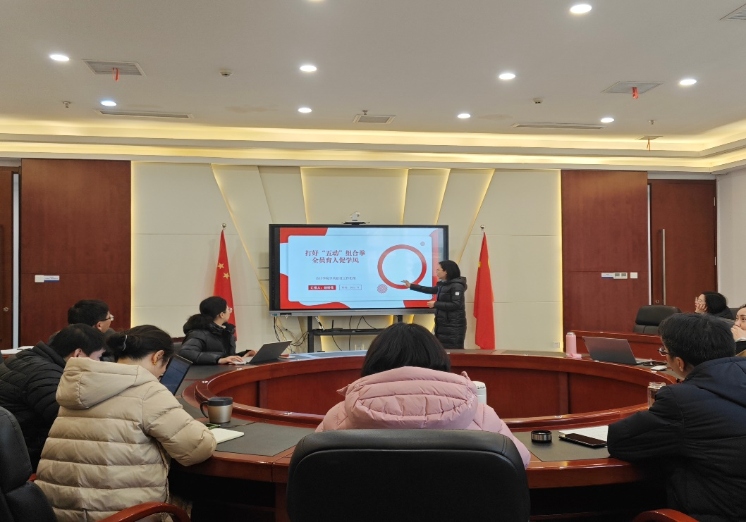会计学院党总支书记姚转花以“打好‘五动’组合拳,全员育人促学风”为主题,从“党员朋辈带动、五维导师联动、产业需求调动、专业活动促动、专业竞赛驱动”五个方面对学院学风建设情况进行总结。物流工程学院党总支副书记王艺燃以“做好学情分析,助力学风建设”为主题,分析学业困难学生学情情况,就实施“两进两督”作经验分享。
