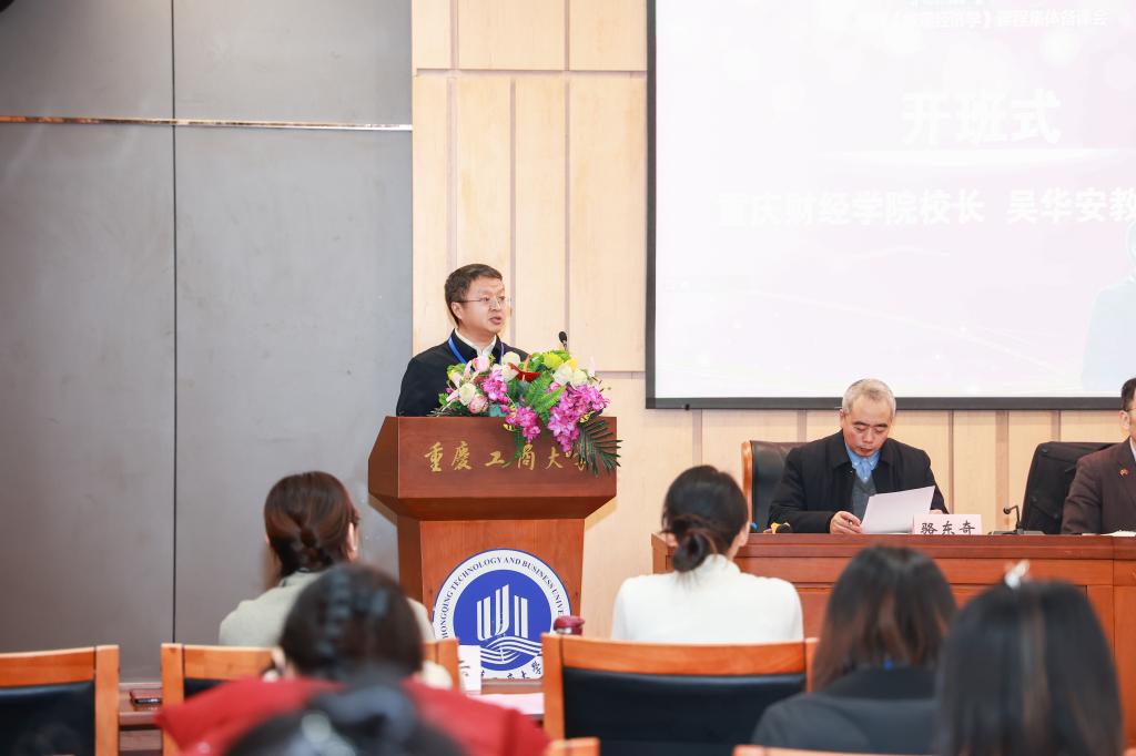重庆工商大学经济学院院长宋瑛教授、西华大学管理学院院长赵修文教授、高等教育出版社经济分社副社长赵鹏、我校校长吴华安教授先后致辞。会议主持由重庆工商大学教务处处长骆东奇教授担任。