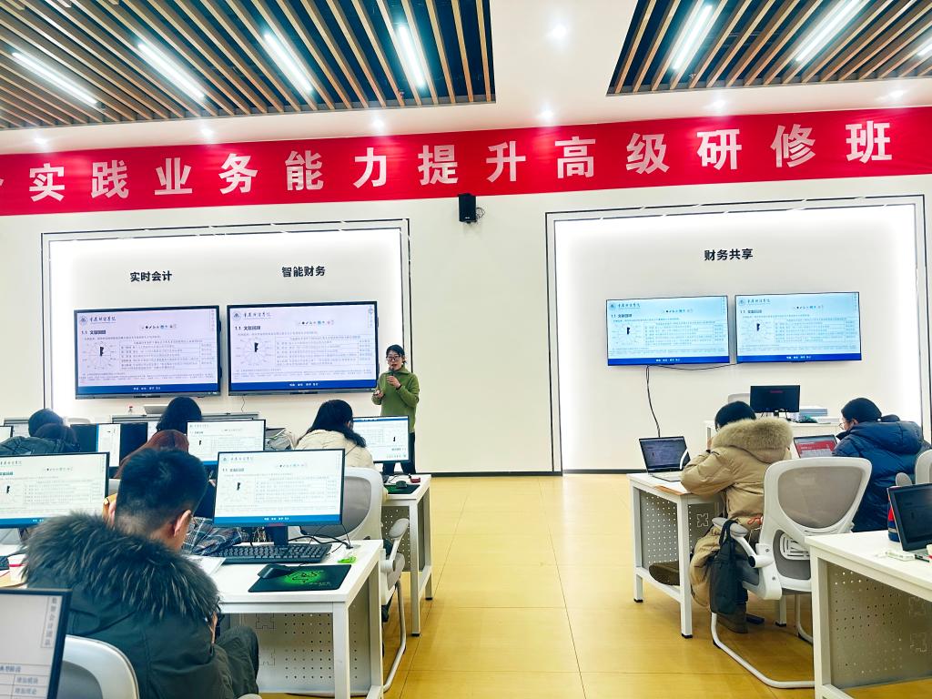 据悉,整个研修过程由新道科技与我校会计学院共同负责,主要提供全方位的课程策划与培训服务支持。“数智企业综合实践业务能力提升高级研修班”将遵循“着眼实操、突出实战、注重实效”的原则,构建“以实养学、以学增技、以技促教、技教相融”的模式,为财会教师集中“充电”,将数智化云财会“课岗赛证”融通教学中的重难点命题研讨贯穿于研修全过程。