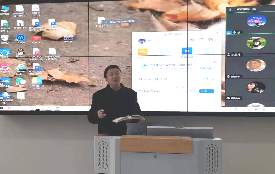 为了更好地总结寒假《微观经济学》课程集体备课会的优秀经验,将我校市级经济学课程群虚拟教研室建设推向更高一级发展平台1月23日下午,校长吴华安教授带领教务处相关负责人在学校教学楼1219教室参加寒假《微观经济学》课程集体备课会的总结会。教务处处长李红平、副处长李梨,经济学院院长兼校级经济学教学团队首席教授李政军、经济学院院长助理刘春兰,以及经济学教学团队成员14位成员通过线上、线下的方式参加会议,会议主持由经济学院院长助理刘春兰担任。