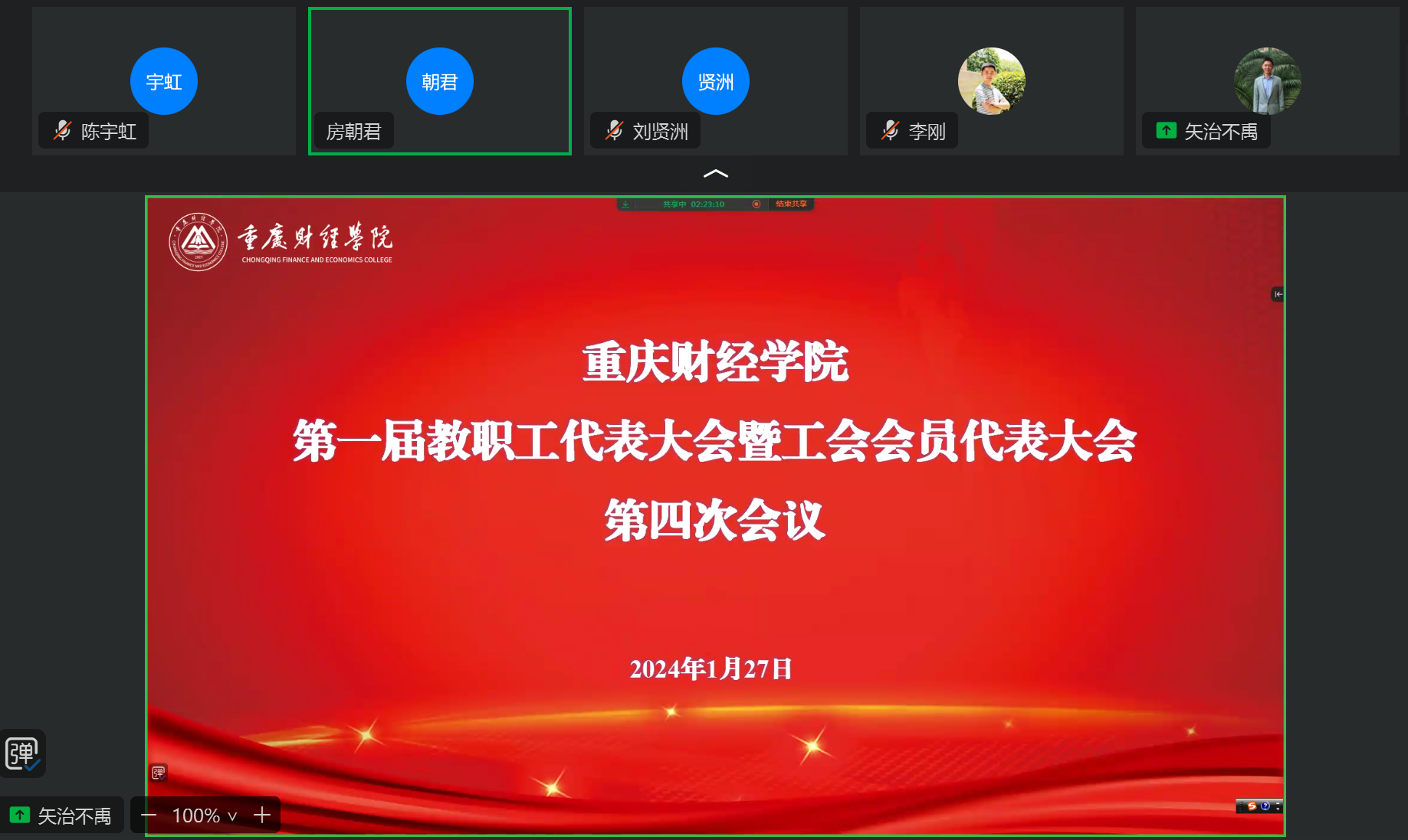 为进一步推进学校依法治校和民主管理,1月27日下午,学校第一届教职工代表大会暨工会会员代表大会第四次会议,以“钉钉线上会议”方式顺利举行。学校校长吴华安,党委副书记房朝君,副校长李春雷、崔中山、张立出席会议。本次“两代会”共53名代表参加会议,会议由党委副书记、工会主席房朝君主持。
