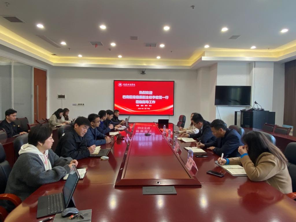 为进一步贯彻落实全市软件和信息服务业“满天星”行动计划,3月19日,巴南区经信委党委委员、区新兴产业发展中心主任李宏茂、区经信委党委委员王大成、区经信委智能制造科科长郭微、渝兴公司招商运营部副部长肖微一行莅临学校调研指导。副校长崔中山、教务处处长兼产业办主任李红平、各二级学院院长参加座谈。